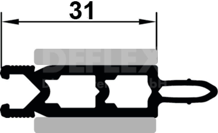 Alternative zu Systemnummer 224812, passend zu FWS50, mit Rasterung für DEFLEX-Halteclip zur thermischen Trennung in Pfosten/Riegelkonstruktionen